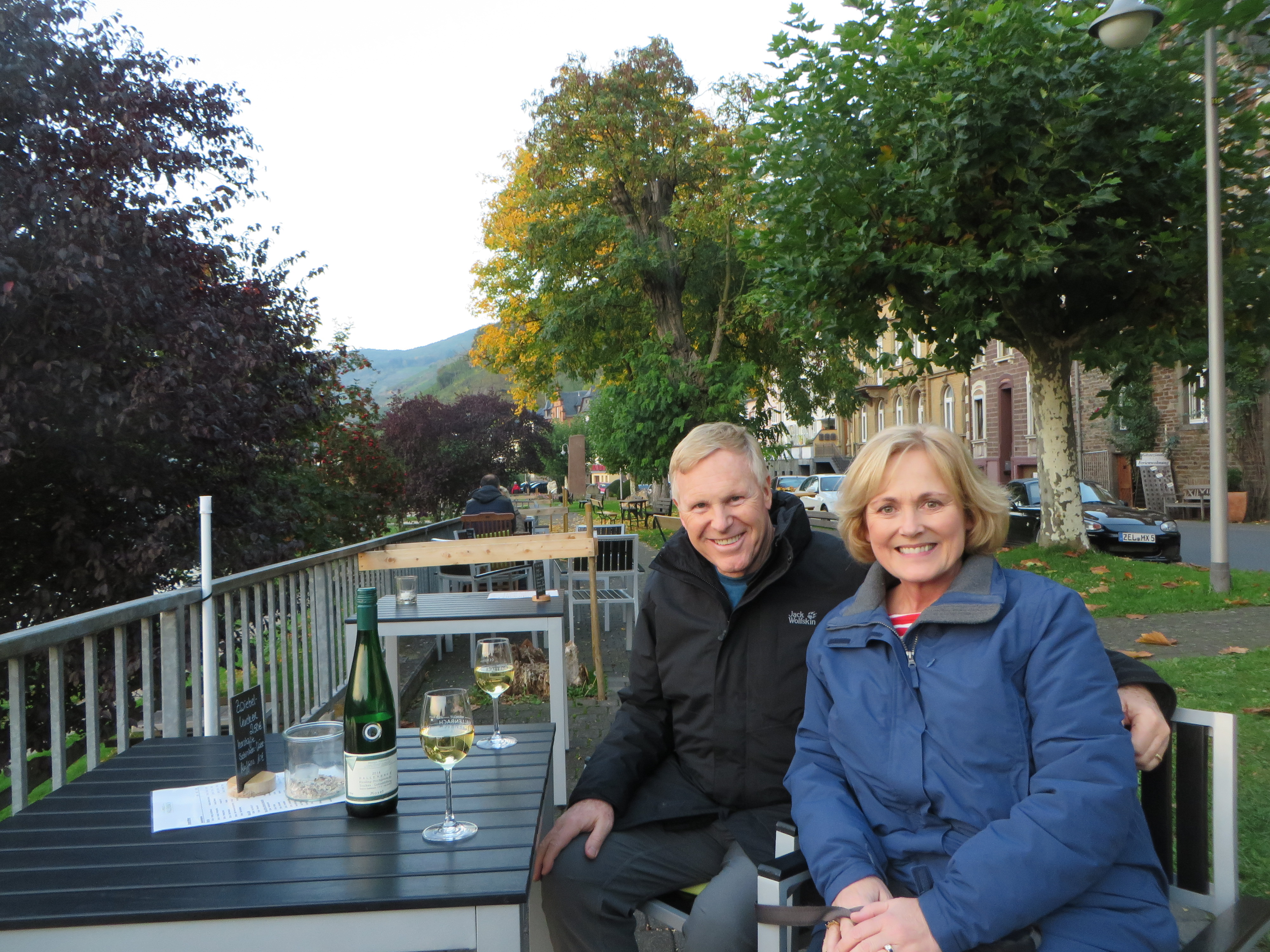 Jay especially remembers Zell from his days at the University of Oregon where he was introduced to the city’s primary product, Zeller Schwarze Katz, or Zell’s Black Cat, by a guy in his freshman dorm. The name is given to virtually all of the wine produced here and one can’t go a block without seeing the ubiquitous black cat with his back arched, or more often, smiling and hoisting a glass of riesling in its hand (paw).