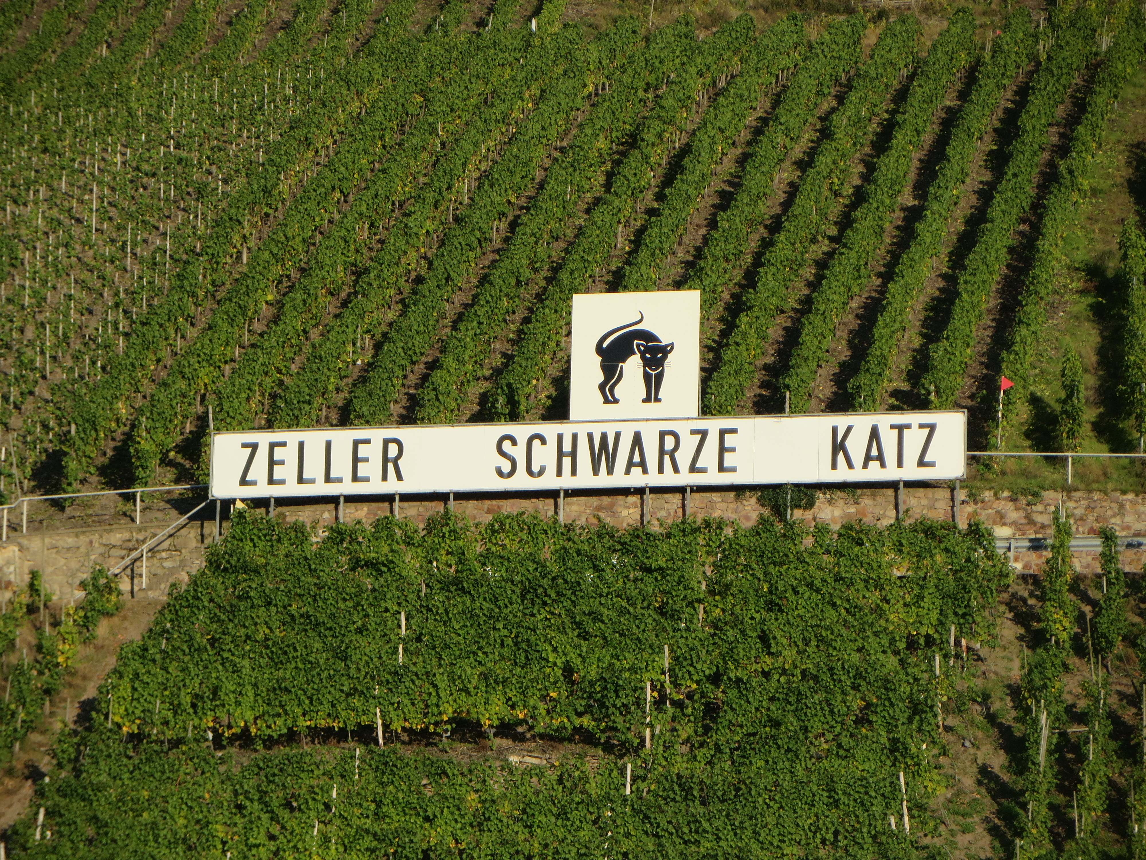 The merchants immediately took this as a sign, bought the barrel without tasting and brought it back to Aachen where they bottled and labeled it with a picture of a black cat with arching back. The wine proved to be so popular that the merchants returned the following year for more of the “black cat” wine and from that time on Zeller Schwarze Katz has been synonymous with the wine grown in this region. The name has now been trademarked by the town and is just as vigorously defended as was the barrel by its namesake.